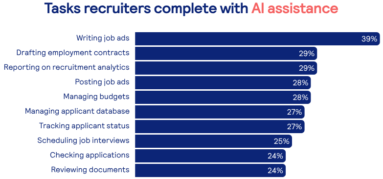 Recruiters spend 11.7 hours on average a week on manual tasks, and 61% find time pressure to fill roles challenging, AI represents a crucial opportunity to free up capacity.